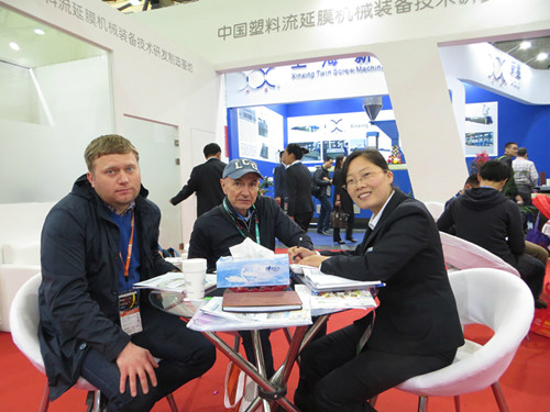 新樂華寶在此次展會中攜四軸全自動高速高配纏繞膜機組和預拉伸復卷機參展。豐富的產品賣點創(chuàng)新的技術,以及業(yè)界好評度,不僅讓有意向的客戶直接進展位洽談,而且還吸引了大量參展的客戶駐足觀看。在為期四天的展會現(xiàn)場,新樂華寶始終門庭若市,成為本展館的焦點所在。