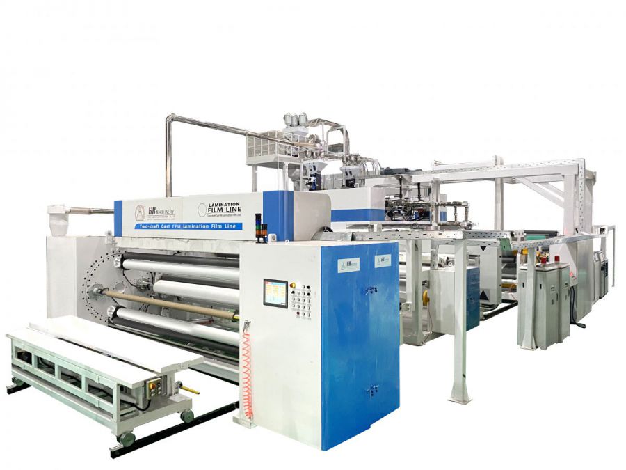 本生產(chǎn)線主要使用TPU脂肪族原料生產(chǎn)透明TPU車衣基材膜,也可以在原料中添加不同顏色的色母生產(chǎn)改色TPU車衣基材膜。應(yīng)用特殊設(shè)計(jì)的螺桿和流延成型技術(shù),配備雙面BOPET保護(hù)膜自動(dòng)放卷裝置、膜片在線自動(dòng)測厚、全自動(dòng)收卷等先進(jìn)技術(shù),實(shí)現(xiàn)生產(chǎn)線的自動(dòng)化穩(wěn)定運(yùn)行,生產(chǎn)高品質(zhì)TPU車衣基材膜。此基材膜通過后續(xù)的涂膠及涂覆表面處理,生產(chǎn)出高品質(zhì)的車衣膜。